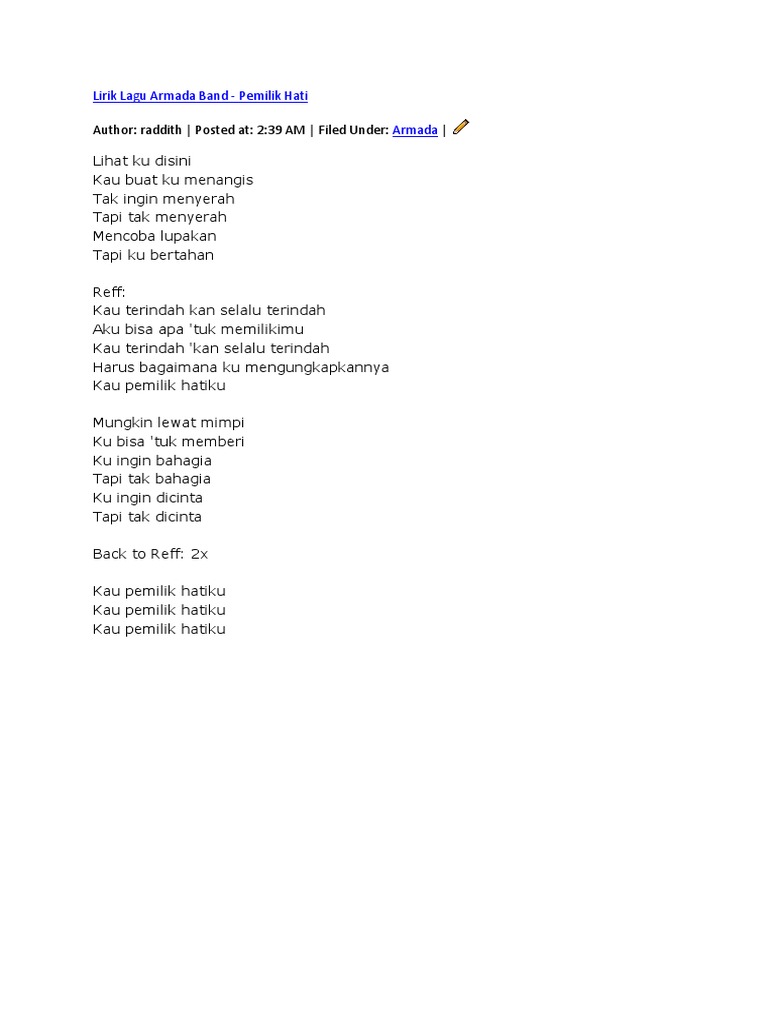 Review Lagu Pemilik Hati Armada Chord Lirik Mynotepat Com